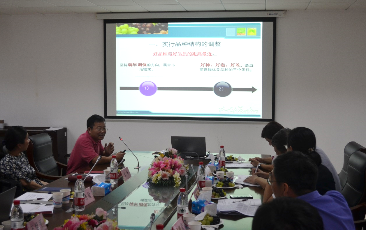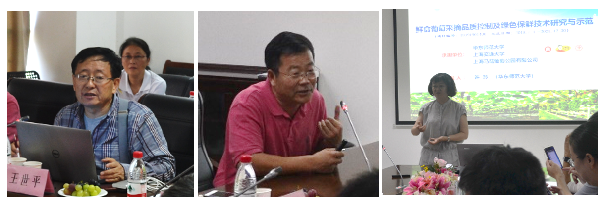 首先,项目组成员代表上海交通大学王世平教授、上海马陆葡萄公园有限公司单涛总经理与华东师范大学许玲教授分别向指导专家们汇报了:我国果树产业需求现状、马陆葡萄公园发展与需求以及本项目的研究内容、实施计划与进展。