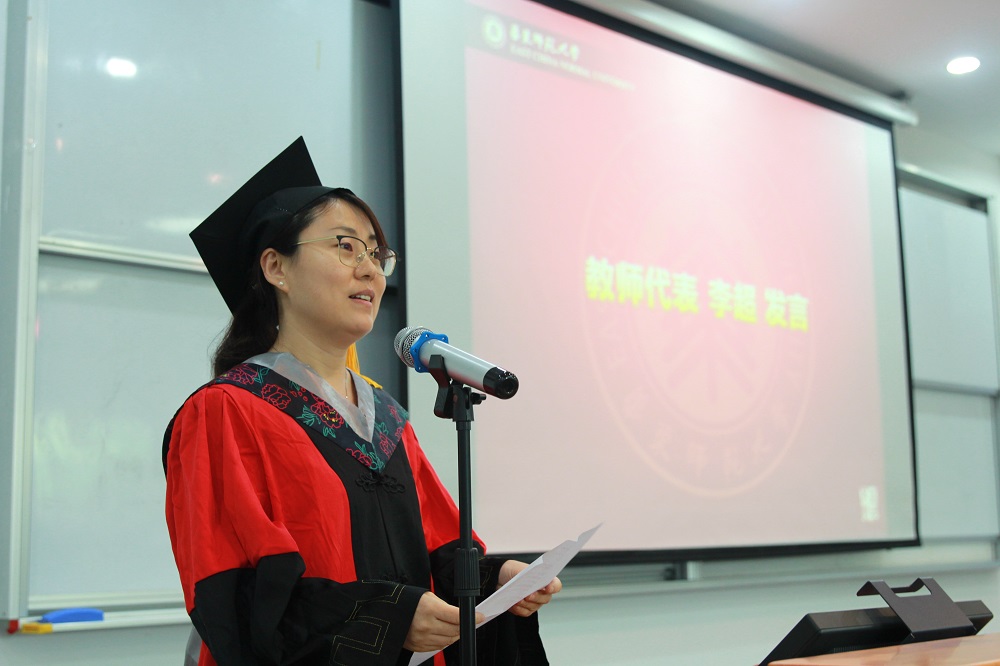 教师代表李超发言。她勉励毕业生们志存高远,担当家国使命;勇挑重任,勤奋踏实,不畏艰难,找到适合自己的“生态位”;富有团队精神,做好人,做好事,在团队合作中实现自我价值。最后,李超老师希望同学们常回家看看,让生命科学学院继续“生生不息”。