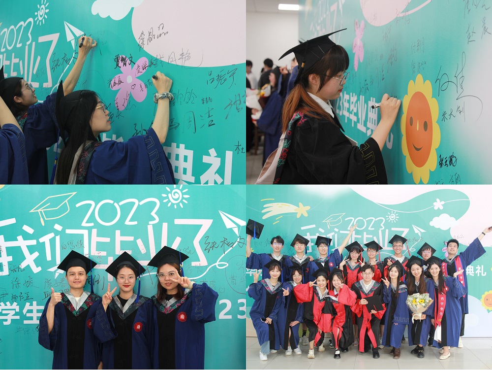学院为2023届毕业生精心准备了毕业礼物,愿毕业生坚定勇敢,保持热爱,向阳而生,从华东师范大学生命科学学院“登机”,飞向理想的远方!典礼最后还特别设计了“彩蛋环节”,毕业生们在倒计时中将手抛彩带抛入空中,齐声喊出“毕业快乐”!